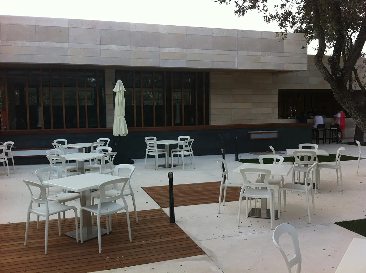 2.800m2 de edificación en 85.000m2 de parcela a restaurar íntegramente destinados a club social. Restaurante, cafetería, tienda, zona eventos, edificio infantil, guardería, oficinas, aulas, vestuarios, aseos, pistas de tenis, paddle, juegos infantiles, piscina, minigolf, terrazas y zonas ajardinadas.